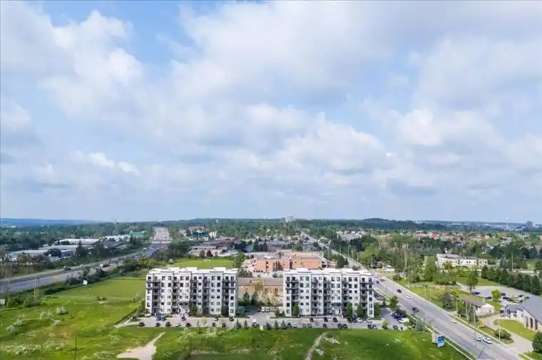 Beautifully upgraded condo at The Junction In Barrie! Spacious 2 Bed plus den, 2 bathrooms, 1,240 square foot corner suite. Gorgeous open kitchen with center island and seating, quartz counters, pot drawers, pot lights, stainless steel appliances. Large living room, walk-out to covered wrap-around balcony overlooking fields on the Northwest corner of the second building. Quiet, beautiful skyline views, most likely the best unit in the buildings. Large primary bedroom with ensuite bath and walk-in closet. In-suite laundry with storage. Quality laminate flooring, carpet free, 9Ft ceilings, water softener. Two parking spaces, one underground and one surface space, locker included with indoor parking. Fantastic location just steps from all kinds of amenities at the North Barrie Crossing Plaza. Groceries, theaters, shopping, medical, and many wonderful restaurants. Conveniently located two minutes To Hwy 400, Hospital, College & Little Lake!