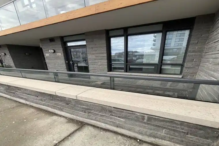 Sun filled south facing 1 bedroom plus den Condo Townhome with a large private patio overlooking Bayly Street, with numerous large windows, glass front entrance door, beautiful dark laminate floors, unit recently painted. Two entrances into this unit. Walking distance to Pickering Town Centre, Groceries, Restaurants and GoTrain Station. Beautiful clean unit, ensuite laundry, high ceilings in Living/Dining Room area, large closet in Master Bedroom and sliding mirror closet in main hallway