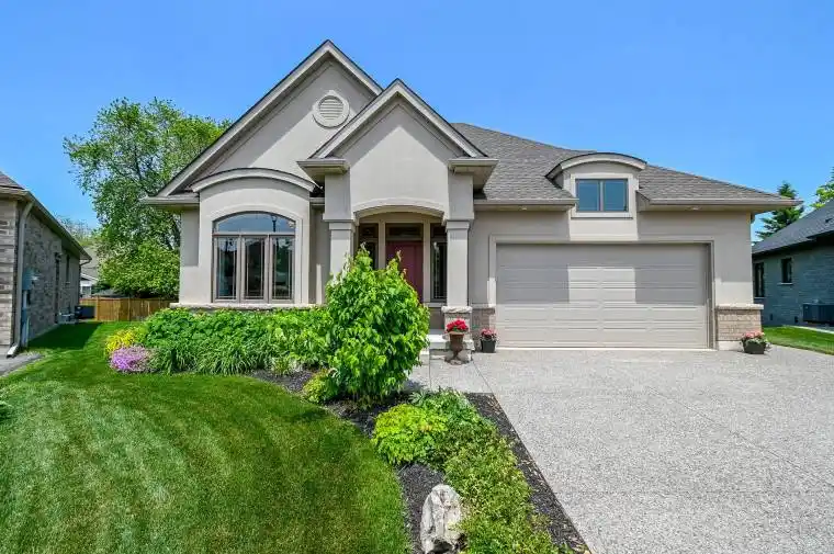 Fonthill location on a private cul-de-sac. Quality Built by Lucchetta Homes, a spacious pie shape lot. Open concept plan 2-bedroom, 2-bathroom bungalow, elegance, with a splash of modern charm. Spacious foyer with a front den/bedroom with double doors, white oak stairs with glass railings. Modern gourmet kitchen design including glass doors, under cabinet LED lighting, kitchen pantry. Living room with 8′ high sliding doors, extra tall windows, upgraded fireplace. Primary bedroom with ensuite bathroom with a floating modern style cabinet, two sinks, oversize window. Many upgrades throughout including upgraded lighting, main bathtub/ tiled shower. All Quartz counters including tiled backsplashes in the kitchen and laundry. Laundry room with custom laundry cabinets. Beautiful tiled and engineered wood flooring throughout. Basement features cold cellar, 5′ wide concrete stairs walk-up from the basement with a wide 42″ door. Upgraded 38″ x 69 1/2″ large basement windows for future bedroom or rec room. Double car garage with man door entrance, exposed aggregate double concrete driveway. 17′ 3″ x 10′ 8″ pressure treated deck with stairs to the back yard. Walking distance to the Steve Bauer trail, minutes to town, schools, close to parks and easy access to Highway 20 and the QEW. 30 minutes to St. Catharines or Niagara Falls, enjoy our best golf courses and Niagara’s finest wineries. Flexible closing date available! Come and see for yourself!