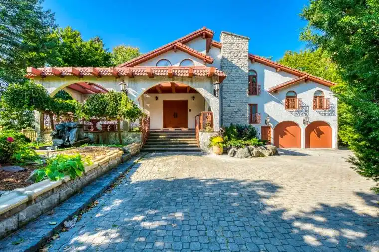 Experience refined living at its finest in this extraordinary custom-built estate, where timeless elegance meets superior craftsmanship. From the moment you step through the beautifully landscaped stone-walled courtyard and into the grand foyer, every detail speaks to exceptional quality and thoughtful design. Soaring cathedral ceilings with three skylights bathe the interior in natural light, while striking wrought iron and oak floating staircases add architectural drama and sophistication. This five-bedroom residence offers a seamless blend of luxury and comfort, featuring multiple stone and wood-burning fireplaces, rich crown moulding throughout, and spa-inspired marble bathrooms. The intelligently designed layout is both spacious and functional, ideal for everyday living and lavish entertaining. A rare 4-car garage, with total parking for up to 12 vehicles, provides ample space for guests and family alike. The fully finished lower walkout basement is a true retreat, complete with a private fitness studio, an elegant recreation lounge with custom made wet bar, a relaxing spa room, sauna, and a cozy fireplace, perfect for unwinding or hosting in style. A rare opportunity to own a home where elegance, warmth, and comfort come together in perfect harmony.