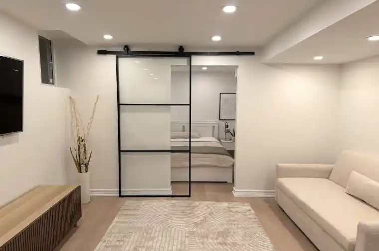 Be the first to enjoy this beautiful, professionally designed space with luxury finishes and immaculately thought out details! You’ll love the brand new kitchen and dining with built in appliances, overlooking the living room with luxury vinyl flooring and high end Samsung TV! The steel frame glass barn doors leads you to the bedroom with a double closet and built in shelving. The bathroom will have you turn everyday showers into a spa-like treatment with the glass double shower, modern finishes, heated, lighted and fogless mirror, and heated towel rack. Convenient den space makes for a perfect office/study nook. This unit is fully furnished and is perfect for a student, young professional, or anyone starting anew! New paved path and cover/roof above the entrance coming this spring!