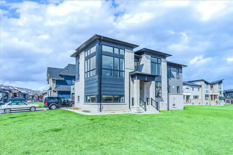 Welcome to a rare corner-lot retreat where mountain elegance meets effortless village living. Just an easy 8-minute walk to the heart of Blue Mountain Village, this exceptional home places world-class skiing, fine dining, spas, boutique shopping, and vibrant après-ski moments right at your doorstep-while still tucked into a quiet, upscale enclave.Inside, soaring 20-foot vaulted ceilings and expansive floor-to-ceiling windows flood the home with natural light. Wide-plank engineered hardwood flows through a bright, open-concept layout designed for both entertaining and unwinding after a day on the hill. The chef-inspired kitchen features modern upgrades and opens seamlessly to a lodge-style great room, complemented by a flexible office/den-perfect for hosting guests or creating a calm work-from-home escape.Upstairs, the primary suite is a true sanctuary with dramatic ceiling heights, a walk-in closet, and a spa-like 5-piece ensuite. Two additional bedrooms enjoy direct access to an elevated wraparound balcony, offering sweeping panoramic views-ideal for morning coffee or sunset wine.With 3,655 sq. ft. of finished living space plus a substantial 1,869 sq. ft. lower level ready to be customized as a gym, theatre, wine cellar, or games room, this home offers exceptional versatility to suit your lifestyle.As a member of the Blue Mountain Village Association, residents enjoy premium resort privileges including a private shuttle, members’ beach club, and exclusive amenities-enhancing the ultimate après-ski indulgence. With year-round events, renowned dining, and outdoor adventure moments away, this property captures the very essence of luxury ski-village living.