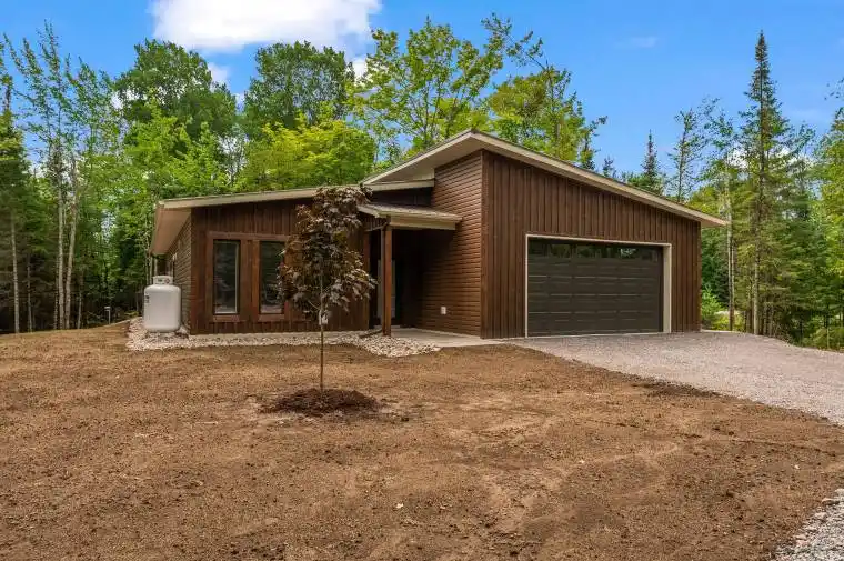This custom built home is pre construction, so you can still have input on cabinet colours, flooring, fireplace finish and so much more! The move in date is flexible, but the sooner you get your offer in, the sooner you are living in your brand new home! The lot has been cleared and the driveway is in place. Your new home will sit high on a hill overlooking the beautiful Madawaska River, situated between Burnstown and Calabogie. You are minutes away from beautiful Burnstown Beach, and the unique village of Burnstown..or go the other direction and you will be in Calabogie. Calabogie offers golfing, skiing, Calabogie Motor Sports, Calabogie Lake, restaurants, kayak rentals and so much more. You are only 15 minutes from Renfrew as well. This 1600 sq/ft home offers two bedrooms plus a den (which could easily be a third bedroom), 9 Ft ceilings and a floor to ceiling fireplace. Primary bedroom has huge walk-in closet as well as a 5pc ensuite. Quartz countertops in kitchen and baths, pantry in the kitchen and walk into laundry/mudroom as you enter house from the garage. Exterior has vertical wood siding at the front and siding on the remainder. Please allow 24 hours irrevocable on all offers