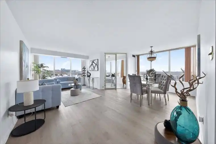 A truly rare corner unit offering one of the largest and most desirable layouts in the building.This exceptional South-East corner residence delivers an ideal balance of space, light, and flexibility, featuring a highly sought-after split 2 bedroom + large den layout, 2 full bathrooms, and an impressive 1,352 sq. ft. of interior living space, plus a private balcony.Bathed in natural light throughout the day, the large, open living and dining areas are perfectly suited for both everyday comfort and entertaining. The kitchen with breakfast area offers generous workspace and storage, while the oversized den is large enough to function as a third bedroom, home office, or guest suite – a rare and valuable feature.The primary bedroom retreat includes a walk-in closet and full ensuite, complemented by a separate, oversized laundry room that provides exceptional storage and functionality seldom found in condominium living.Two parking spaces are included, adding significant convenience and long-term value.The building is currently undergoing major capital improvements, including newly renovated lobby and hallways, exterior upgrades, and balcony refurbishment, further enhancing curb appeal, lifestyle quality, and future value. Maintenance fees include all utilities, cable TV and internet, offering predictable and cost-effective living.Residents enjoy an impressive array of amenities, including 24-hour concierge, indoor pool,fitness centre, sauna, squash and tennis courts, party/meeting room, and ample visitor parking.Ideally located just minutes to shopping, transit, Highways 7, 404 & 407, Mackenzie Health,top-rated schools, and parks.A rare opportunity to secure size, sunlight, layout, and versatility in a well-managed,established building – a home that stands apart in today’s market.Note: Upon completion of the special assessment, monthly maintenance fees will be REDUCED $235.19/month accordingly.