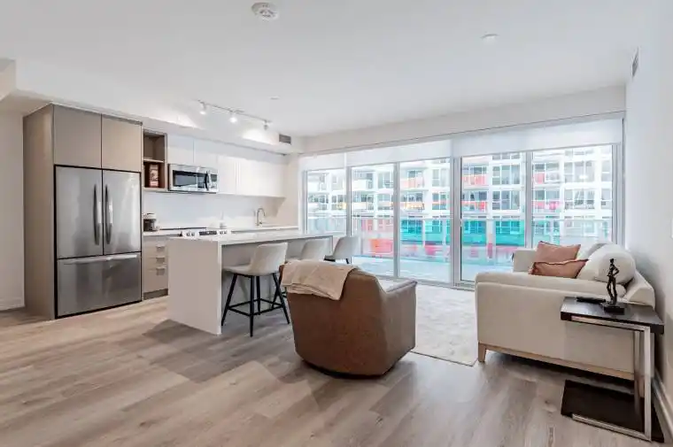 ***Modern 3-Bedroom Haven at Sunseeker – West Views & Designer Upgrades*** Step into luxury resort living at Sunseeker, Friday Harbour’s newest lakeside gem. This bright and spacious 3-bedroom, 2-bathroom residence is filled with thoughtful upgrades and refined modern touches throughout. The heart of the home is its impressive open-concept kitchen and living area, designed for both everyday comfort and easy entertaining. A sleek waterfall-edge island, two-toned cabinetry, and high-end appliances create a chef-inspired space that flows effortlessly into the expansive living room – with enough room for a full dining setup. Enjoy sunsets from the large west-facing balcony, offering beautiful views over the dry courtyard and the Lake Club. The primary bedroom features a 4-piece ensuite, built-in cabinetry, and large windows that fill the room with natural light, while the additional bedrooms provide space for guests or a home office. From its stylish finishes to its generous layout, this home perfectly captures the relaxed sophistication of Friday Harbour Resort – where lakeside luxury, dining, and recreation meet just an hour from Toronto. This upgraded suite also includes two premium parking spots, offering convenience and added value. ***EXTRAS*** Lifestyle investment: $262.47/month lake club fee monthly, $619.73/month condo fee, Annual fee $2,221.13/yr. Buyer to pay one-time 2% plus hst Friday Harbour association fee.