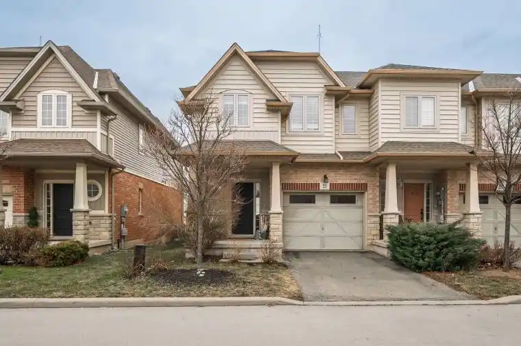 Welcome home to this stunning lakeside retreat where comfort, space, and lifestyle come together. This beautifully maintained FREEHOLD end-unit townhome offers 3 bedrooms, 2.5 bathrooms, and a rare FINISHED BASEMENT, providing over 2,400 sq. ft. of thoughtfully designed living space. Step inside to rich hardwood floors and an inviting main level with 9-foot ceilings, where the living room, dining area, and gourmet kitchen flow effortlessly-perfect for both everyday living and entertaining. The kitchen features granite countertops, a gas range, and an extended pantry, ideal for the home chef. Upstairs, double doors lead you into a serene oversized primary suite complete with a walk-in closet, spa-like ensuite, and your own private balcony with peaceful lake views. Two additional bedrooms, an updated bathroom, and convenient second-floor laundry complete the upper level. The finished basement, a rare offering in this community, includes a built-in wet bar with bar fridge and creates an exceptional space for both kids and adults alike. Outside, enjoy a fully fenced backyard with incredible views of Lake Ontario, complete with a gas line for your BBQ, creating the idyllic summer evening. This home is perfectly situated in the highly sought-after Grimsby Beach community, where you are just steps from the beach and waterfront parks, and minutes to the QEW, shops, and restaurants. Rarely available and perfectly positioned, this end-unit townhome captures the very best of lakeside living. Don’t let it slip away!