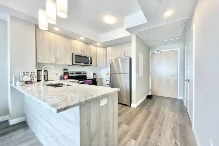 Exceptional Downtown Kitchener Apartment located in the heart of the city, just steps from Kitchener City Hall, Communitech, Victoria Park, Google, dining, and public transit. Enjoy morning coffee on the private balcony with impressive panoramic views from the 14th floor. This modern residence is ideally suited for professionals seeking proximity to Kitchener’s thriving technology hub. The kitchen features stainless steel appliances and granite countertops, offering a sleek and contemporary design. Building amenities include a fully equipped fitness center, an outdoor terrace with BBQ facilities, and a reservable amenity room ideal for entertaining and special events. An outstanding opportunity-schedule your private viewing today.