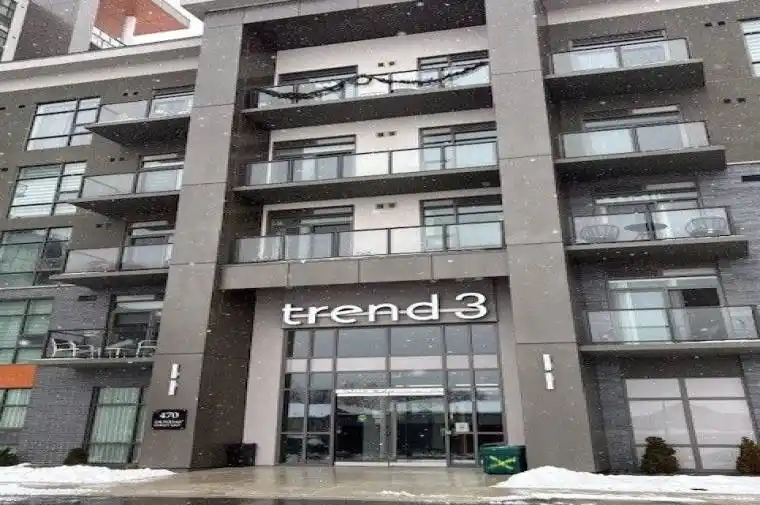 Welcome to this stunning 10th-floor unit in the highly sought-after Trend 3 community! Step into a bright and inviting 2-bedroom, condo. The open concept layout seamlessly connects the modern kitchen and living area, featuring brand-new stainless steel appliances, a stylish breakfast bar with quartz counter tops, and direct access to your private balcony w/exposure to two sides. A well-appointed 4-piece bathroom and the convenience of in-suite laundry complete this thoughtfully designed space. Enjoy a lifestyle of comfort and convenience with exceptional building amenities, including vibrant party rooms, a state of the art fitness center, scenic roof top patios, and secure bike storage. Located in the heart of Waterdown, this home features effortless access to top-rated dining, shopping, schools, and picturesque parks. Included with the unit is 1 owned surface parking space and an owned locker for extra storage. Experience contemporary living at its finest in this exceptional condo