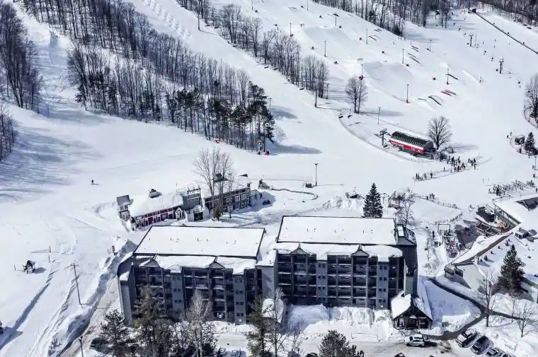 EXPERIENCE THE BEST OF HORSESHOE VALLEY LIVING! 2 BEDROOMS PLUS DEN! Experience year-round adventure and luxury living in this spectacular top-floor penthouse suite, perfectly situated in Horseshoe Valley! With nearly 1,200 sq. ft. of spacious living space and high ceilings throughout, this home is ideal for those seeking both comfort and excitement. Just moments away from restaurants, Vetta Nordic Spa, and a wide range of outdoor activities like skiing, snowboarding, golf, kayaking, and more, this location offers something for everyone. Enjoy breathtaking views of the slopes from your private balcony, accessible from both the living room and the large primary bedroom, where you can also listen to live music from the concerts at Horseshoe. The suite comes fully furnished with modern and tasteful furnishings. The chef-inspired kitchen features dark-toned cabinetry, high-end appliances, granite countertops, a stylish tile backsplash, and plenty of cabinet space for all your kitchen essentials. The elegant living room boasts a two-sided fireplace, creating a cozy ambiance, and is complemented by a modern chandelier. The spacious interior offers two generously sized bedrooms plus a den with a pullout couch – perfect for hosting guests overnight! The large primary bedroom includes a walk-in closet and an ensuite featuring double sinks, a glass-walled shower, and a linen closet for extra storage. Additional features include an in-suite washer and dryer, a storage locker for skis, snowboards, bikes, and more, and condo fees that cover water, gas, parking, common elements, and insurance. Amenities include indoor and outdoor pools, a sauna, a shared beach, a communal waterfront area, an exercise room, and visitor parking. Plus, Horseshoe Valley offers a rental program that makes it easy for vacationers and skiers to rent your unit. Don’t miss out on the opportunity to own this perfect year-round retreat in Horseshoe Valley, where adventure awaits!