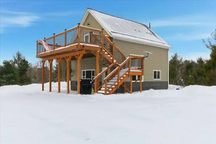 Set on 24 acres of private land, this exceptional property offers endless possibilities-whether for year-round living, recreational use, or working from home. This peaceful retreat must be seen to be fully appreciated. Start your mornings on the second-floor deck with a coffee in hand, taking in sweeping views of your own acreage and the abundant wildlife the Addington Highlands are known for. In the evening, return to the same spot to unwind and watch the sun set after a day spent exploring the property. Built in 2019, the home features open-concept main-floor living with soaring ceilings, expansive windows, a cozy propane fireplace, and a heat pump providing efficient heating and cooling. The main level also includes a 2-piece bathroom and a walkout to a covered porch. Upstairs, the spacious primary suite offers a walk-in closet, wall-mounted fireplace, a luxurious ensuite bathroom, a laundry nook, and direct access to the upper deck. Outdoors, the property invites year-round enjoyment with ample room for hiking and ATVing, and is conveniently located close to established snowmobile trails-ideal for winter enthusiasts. Additional cold-season activities include snowshoeing, cross-country skiing, and wildlife watching. A screened-in gazebo tucked into the woods provides a peaceful setting for outdoor meals in warmer months, while a detached garage offers plenty of storage for vehicles, equipment, and recreational toys, making it easy to enjoy the country lifestyle in every season.