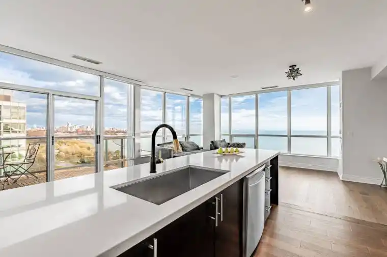 Welcome to this stunning 2-bedroom, 2-bathroom penthouse featuring breathtaking, unobstructed direct water views of Lake Ontario. Brand mew hardwood flooring, Brand new Fridge, Fresh new paint, Expansive floor-to-ceiling windows flood the suite with natural light, creating a bright, open, and inspiring atmosphere from sunrise to sunset. The beautifully designed large kitchen island serves as the centre piece of the gourmet kitchen-perfect for cooking, entertaining, and gathering with guests. The open-concept living and dining area flows seamlessly, showcasing panoramic lake views and the elevated privacy that only a penthouse can provide. Both bedrooms are generously sized, with modern bathrooms offering comfort and style. This exclusive residence includes parking, making it as practical as it is luxurious. Steps from Toronto’s waterfront trails, parks, cafes, transit, and vibrant urban amenities, this penthouse offers an unmatched lifestyle in one of the city’s most desirable locations. A rare opportunity to own a true waterfront penthouse with world-class views and exceptional modern design. min 6 months + will be considered.