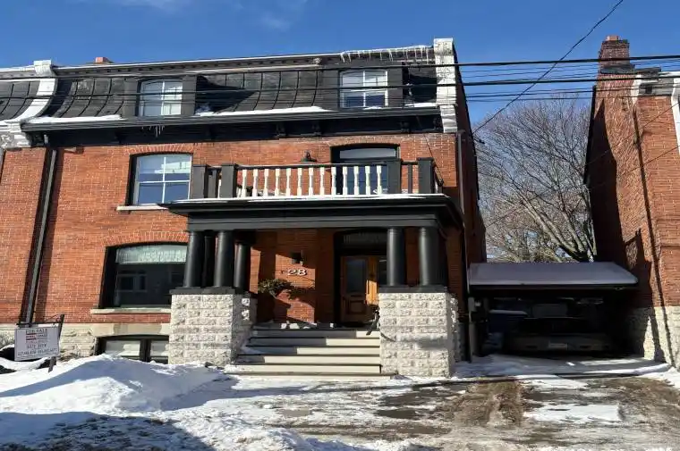 Rare opportunity to take over a piece of history with this classic and delightful five-bedroom family home, in the heart of the coveted Sydenham Ward in downtown Kingston. This charming residence was meticulously designed by renowned architect Jonathan Power in 1878, and benefits from a remarkably large garden, difficult ever to find in this central location, just steps from Market Square, KGH and Queens .Enjoy the comforts of modern living with a recent full renovation (designed by the interior designer owner) which included a new kitchen, luxurious bathrooms, and an elegantly finished basement equipped with 8 high ceilings and ample natural light. The expansive rear garden is a true gem, featuring a stylish deck and a European-style gazebo(just built), providing an idyllic space for relaxation and entertainment. Plus a gas fire piton the terrace to enjoy on cooler evenings. This home harmoniously blends classic architecture(both inside and out) with contemporary amenities. Enjoy the original restored radiators for character, alongside modern air conditioning on the top three storeys and efficient radiant heat from a new gas-fired boiler. From the fully restored front porch and balcony crafted with cedar and ipe wood to the inline parking accommodating up to three vehicles with a carport, every detail has been considered. With five generously sized bedrooms and three baths, there is plenty of room for the entire family to live and thrive. This is a unique opportunity to own a stunning home that offers both historic charm and modern convenience in the heart of Sydenham Ward.