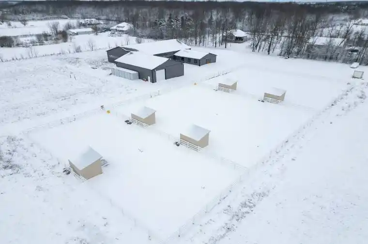 This remarkable 27+ acre Niagara Estate offers TWO newly built luxury homes and a stunning shop and horse facility. An exceptional opportunity for multigenerational living or a high-potential investment. The first of the two beautifully appointed homes is a luxury 1290sq ft bungalow with 2+1 bedrooms and 2+1 bathrooms, high-quality finishes, a durable metal roof, a heated 1-car garage, and a fully finished “daylight” basement with a separate entry. The landscape around this home is ready for your personal touch. The second residence is a landscaped 5-year-old, 2,050 sqft. bungalow with attached garage offering an open concept 3 bedrooms, 2+1 bathrooms and featuring hardwood floors, a finished basement with kitchenette and separate entry. The equestrian amenities here are all BRAND NEW and thoughtfully designed which include a 12000sqft dream equestrian complex with six 12×12′ gorgeous stalls, a wash bay, a connected 60×100′ indoor riding arena, three gravel-based paddocks sharing five run-in shelters and heated water bowls, and a prepared setup for a 100′ x 200′ outdoor riding arena. A 48×64′ shop makes up a whole wing of this complex hosting an additional four 12×10′ metal stalls with direct access to the arena with a 14′ roll up door. There is also a 40×50′ insulated and heated shop with a 16×12′ roll-up door, perfect for equipment storage, business operations, or hobby use. Each building on this property is serviced with natural gas and the two homes have completely separate services which may provide a buyer with the potential for severance (buyers due diligence). Indeed, this is a must-see to truly appreciate all the high-end features and finishes. Please connect with a realtor for a more detailed feature sheet, or to book a tour.