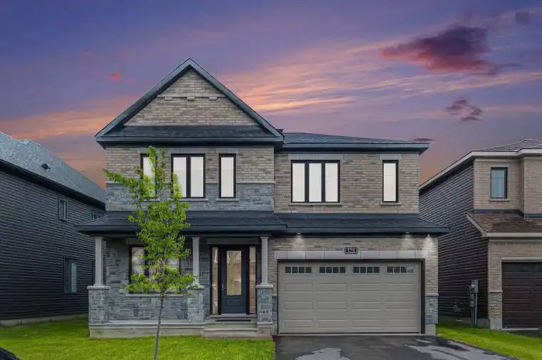 Step into sophisticated living with this impressive 6+1-bedroom, 5.5 -bathroom detached home in the highly desirable Mahogany community of Manotick. This Minto Rosewood model with main floor guest suite offers an expansive and functional floor plan designed to accommodate modern family life with style and flexibility. Situated on a quiet residential street, the home enjoys a peaceful setting just minutes from parks, schools, and village amenities. Inside, soaring 9-foot ceilings on both the main and second levels create a bright, open feel throughout. The main floor features an elegant formal living/dining room, a generous family room with a sleek gas fireplace,and a stylish kitchen with a large centre island, upgraded cabinetry, stainless steel hood fan, and a ceramic tile backsplash. The main floor office will give you quiet space to work. A private in-law or guest suite on the main level includes its own 3-piece ensuite, offering ideal accommodations for extended family or visitors. Upstairs, the spacious primary bedroom includes a large walk-in closet and a 5-piece ensuite complete with double vanities, a soaker tub, and a separate glass shower. Two secondary bedrooms share a Jack & Jill bathroom, while two additional bedrooms share a full bath. While currently configured with a large linen closet, the upper level also has a designated space for optional second-floor laundry.The fully finished basement expands the homes versatility, offering a large recreation room, an additional bedroom, a full bathroom, and generous storage.
