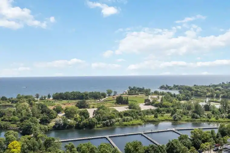 Two Bedroom corner unit With Lake Views. Bright Open Concept Living Room With Access To 350 Square Foot Wrap Around Balcony. Modern Kitchen With Top Of The Line Built In Stainless Steel Appliances. Spacious Bedrooms With Mirrored Closets. Unit Also Features One Underground Parking Spot And Large Storage Locker. Top Amenities; 24 Hour Security, Fitness Center, With Sauna And Yoga Studio, Party Room, BBQ, Guest Suites And More.