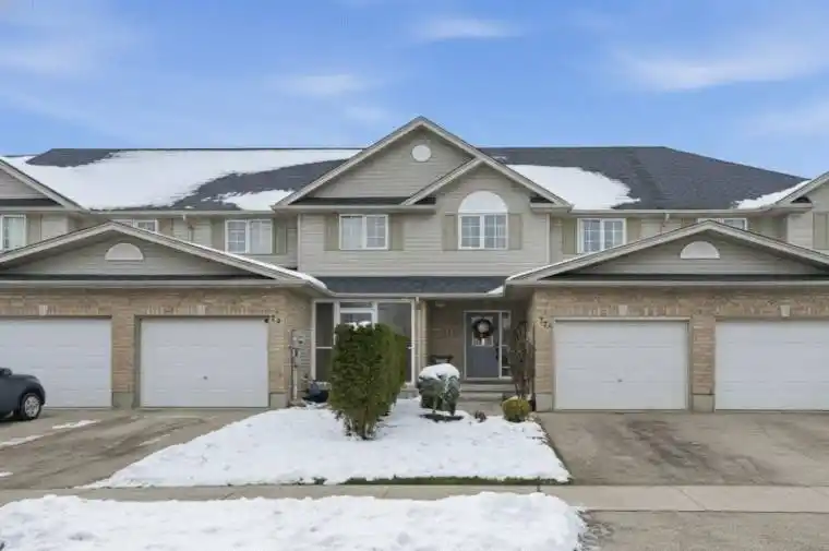 77 Severn Drive is strategically located in Guelph’s desirable East End, offering protected greenspace views to the front and back. This open-concept FREEHOLD townhome (no condo fees) offers the functionality of a detached house combined with the peaceful setting of a quiet street. The inviting cobblestone walkway leads you into a home where the main floor shines with an open-concept layout integrating a well-sized eat-in kitchen with a bright, comfortable living area, featuring a custom fireplace. Oversized windows and a sliding back door maximize natural light and open onto a private backyard setting, complete with a spacious deck and fully fenced yard; enjoy the tranquility provided by the established perennial garden and the beautiful protected greenspace views. The upper floor features a spacious primary suite with an expansive closet complete with sliding barn doors and built-in shelving, a full 4-piece bathroom, and two additional bedrooms overlooking the nearby nature area. The finished lower level adds immediate bonus living space with a large recreation room and a modern three-piece bathroom. This FREEHOLD townhome is an excellent choice for first-time buyers and growing families, providing substantial local convenience: it is within walking distance to multiple parks and excellent schools (including a French Immersion option). Residents enjoy immediate access to the Watson Creek Trails plus local amenities like Eastview Community Park (splash pad, disc golf, pump track) and the East End Guelph Public Library. The Victoria Road Recreation Centre (pool, arena) is a quick drive away, and the property is located a short drive from the planned Guelph Innovation District, ensuring strong future growth. This property delivers a unique blend of established community convenience and quiet natural setting privacy. Image Disclaimer: Some images have been digitally enhanced.