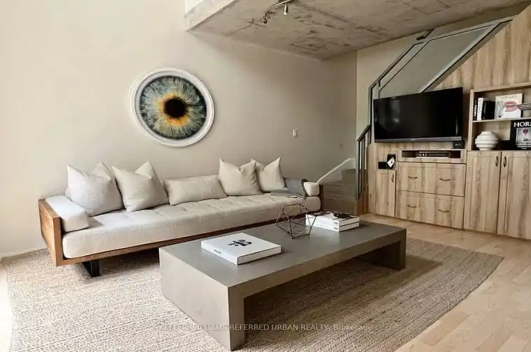 Experience elevated urban living in this remarkable 2-Level Loft! Welcome to a unique blend of sophistication & functionality in this exceptional 2-level loft. Offering 1 bed + versatile den, bathroom + powder room & soaring 16-foot ceilings, this loft boasts approximately 800 sq/ft of thoughtfully designed living space. The second floor is your sanctuary, featuring a spacious Primary Bedroom that can comfortably fit a King Size Bed, a 2nd-floor laundry, and an open-concept den with a custom-built desk & storage for all your needs. Your own south facing private balcony where sizzling BBQ feasts are not only welcome but encouraged. Heat, Hydro and Water are included in the lease, making budgeting a breeze! You will also enjoy the convenience of one parking space, a locker for additional storage & a private bike rack. *Photos from prior listing & New White Marbled Kitchen Countertop Installed*