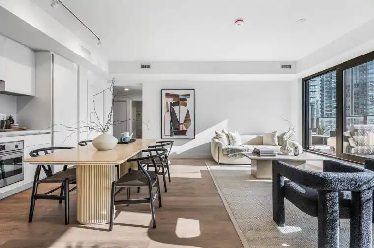 Live at the heart of the vibrant Exchange District. Welcome to EX1 at 4015 The Exchange in the heart of downtown Mississauga, steps to Square One! Feel comfortable in this bright and spacious 2 bedroom suite with beautiful luxurious modern finishes. This beautiful corner unit features an expansive 500sf west facing terrace with views of Celebration Square and the Mississauga Skyline. Balcony from primary bedroom with views of Square One. Well appointed interior designs and finishes including: approx 9′ ceilings in living/dining room and primary bedroom, Integrated appliances, imported Italian kitchen cabinetry from Trevisana, Quartz countertops, Latch innovative smart access system, Kohler plumbing fixtures. Taxes not yet assessed. Geothermal heat source. 2 Parking & 1 Locker included.