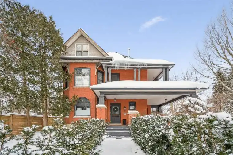 Escape to Elora and discover one of the village’s most iconic homes. Built by the town’s original mill owner around 1900, this nearly 3,500 sq ft heritage home blends timeless character with modern comfort – just steps from Downtown. With soaring ceilings, oversized principal rooms, and large windows, this home is flooded with natural light and an incredible sense of space. Solid hardwood floors, stained glass accents, and beautiful pocket doors highlight the craftsmanship of a bygone era, thoughtfully preserved throughout. The renovated kitchen features stone counters, premium finishes, and a generous island that flows effortlessly into both the formal and informal living areas. Upstairs, the timeless and luxurious primary suite offers a true retreat, complete with a stunning ensuite bathroom and a massive walk-in closet/dressing room. Two additional generous bedrooms offer comfort and privacy and as an added bonus – a third story loft adds even more space for guests, work, or play. Outside, imagine yourself enjoying a cup of tea on the wraparound front porch, perfect for peaceful mornings and neighbourly chats. The pool-sized backyard is beautifully landscaped with mature trees (one with a swing!), hardscaping, firepit, two decks, and a hot tub for year-round enjoyment. Deep historical roots, unbeatable curb appeal, and a walkable location just beyond the tourist path, this is a rare opportunity to own a piece of Elora’s living history.