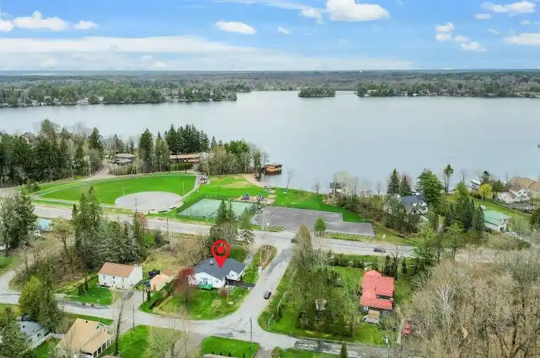 Welcome to your dream escape by the water, where panoramic views of Lake Muskoka and direct access to Muskoka Bay Park create a truly special setting. This beautifully upgraded home offers a rare combination of peaceful lakeside living and vibrant outdoor recreation, all just steps from your front door. Enjoy morning coffees or evening sunsets from the charming front porch as you overlook the park, where the historic Segwun Steamship glides past on sunny afternoons. Muskoka Bay Park is an extension of your backyard, featuring a sandy beach, baseball diamond, tennis and pickleball courts, and a lively playground, making this an ideal location for families, outdoor enthusiasts, and those seeking an active Muskoka lifestyle. Inside, the home is spacious and thoughtfully updated, offering four generously sized bedrooms and two modern bathrooms. The kitchen was renovated approximately two years ago and showcases contemporary cabinetry, sleek countertops, quality appliances, and ample storage, perfect for everyday living or entertaining guests. Updated flooring flows throughout the home, adding warmth and style, while a newer three-piece bathroom features tile floors and a large walk-in tiled shower. The living room is a standout, with soaring vaulted ceilings over 12 feet high, creating an inviting yet impressive space for gathering and relaxing. Additional upgrades include a professionally waterproofed basement for added piece of mind and a fully insulated attached garage complete with built-in shelving and multiple electrical outlets, ideal for hobbies, storage, or projects. complete with extra electrical outlets and shelving – perfect for storing outdoor gear or pursuing hobbies. With two driveway spaces, parking is never an issue, ensuring convenience for residents and guests alike.