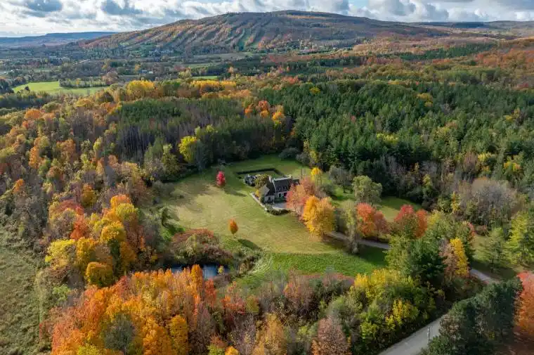Discover an extraordinary opportunity to own a rare 32.14-acre luxury estate in the Blue Mountains, ideally positioned on the border of Collingwood and just minutes from Osler Bluff Ski Club, OslerBrook Golf & Country Club, Blue Mountain Village, and downtown Collingwood. Set well back from the road with a long, tree-lined driveway, this exceptional property offers remarkable privacy, natural beauty, and endless potential. Built in 1982, the stately stone residence presents an ideal canvas for those looking to create a custom dream estate with some views out to the bay in the winter. The grounds are truly spectacular. Highlights include a 56′ x 25′ PebbleTec pool with seasonal hot tub, poolside gazebo, pond, meadow, creek, and a private trail system winding through a mature forest. Silver Creek meanders through the East edge of the property, with seasonal salmon and Trout runs adding to the unforgettable natural landscape. Whether you envision a serene country retreat or a reimagined modern luxury estate, this one-of-a-kind property delivers unmatched location, privacy and scale in one of Southern Georgian Bay’s most coveted recreational destinations. Your private retreat awaits. A must-see!