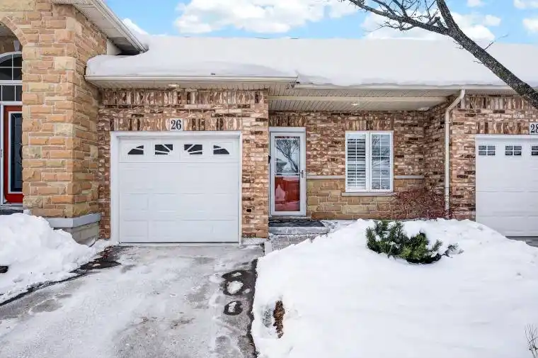 Discover effortless living in this well-cared-for 2-bedroom, 2-bath bungalow located in the desirable Garth Trails adult lifestyle community. Offering approximately 1,100 sq. ft. of functional and inviting space, this home features an attractive brick and stone exterior, a single-car garage with interior access, and a private driveway. Inside, the layout is both practical and welcoming. A front bedroom and spacious foyer with linen storage set the tone, while the kitchen offers generous cabinetry, a breakfast peninsula, and a seamless flow into the combined living and dining area-ideal for everyday living and entertaining. patio doors open to a quiet rear patio with no unit directly behind, providing added privacy. The primary bedroom includes his and hers closets and a 4-piece ensuite privilege. Main-floor laundry enhances the ease of single-level living. The finished lower level expands your living space with a large recreation area, a 3-piece bathroom, and ample storage. Neutral finishes throughout make the home move-in ready and easy to personalize. This is not your typical rental townhome. Residents of Garth Trails enjoy access to an exceptional clubhouse and resort-style amenities, including an indoor pool, sauna, whirlpool, fitness centre, tennis and pickleball courts, bocce, shuffleboard, craft and games rooms, a putting green, and a grand ballroom hosting regular social events. Surrounded by private parkland and tranquil pond views, this community offers a relaxed, low-maintenance lifestyle in a truly special setting.
